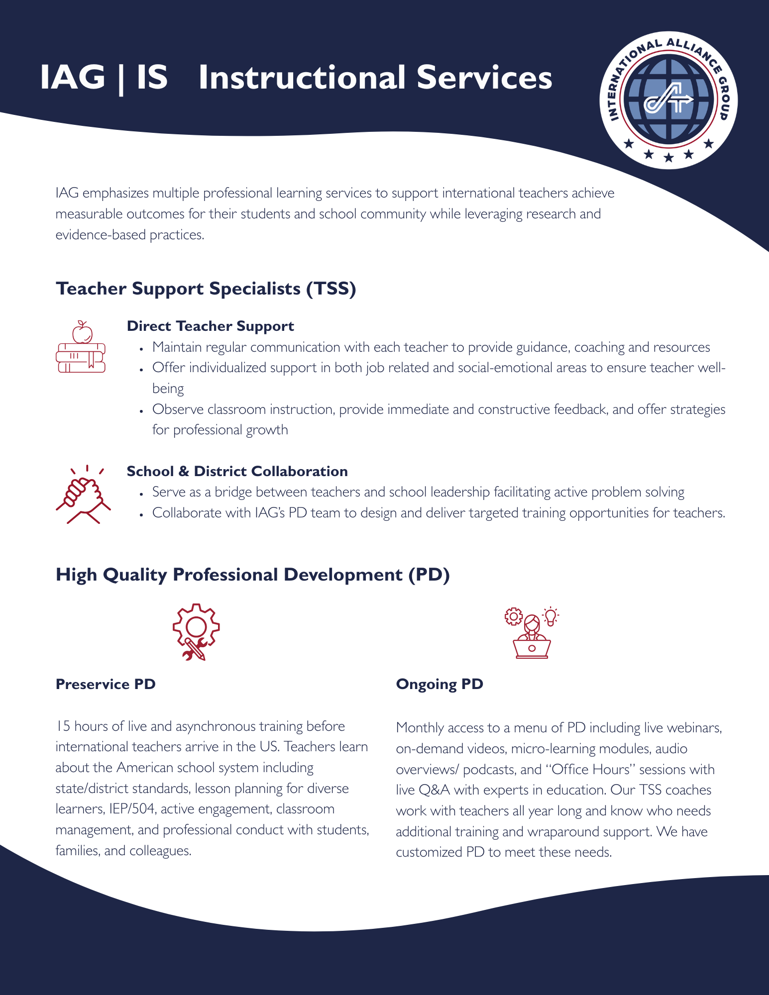 International Alliance Group connects schools in the United States with exceptional international educators. With years of experience in international recruitment, immigration, and visa assistance, IAG facilitates meaningful cultural exchanges that enrich communities and advance careers.